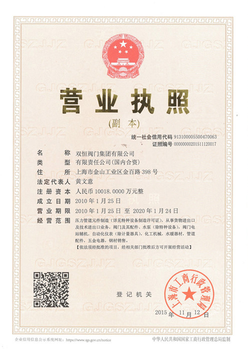 上海雙恒閥門集團營業(yè)執(zhí)照